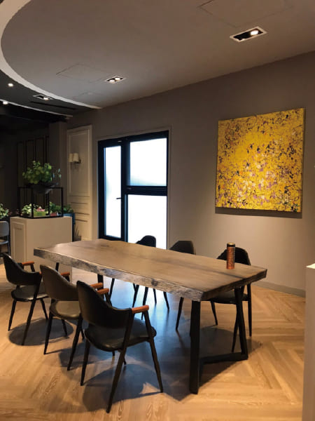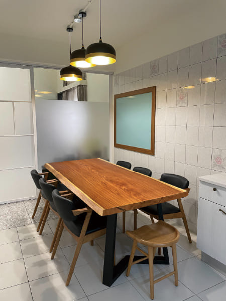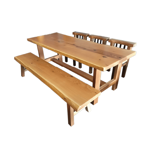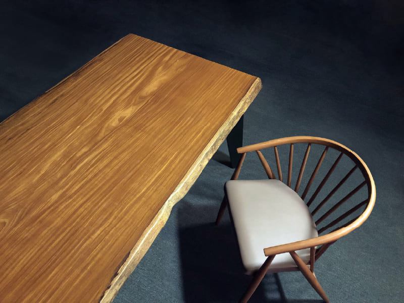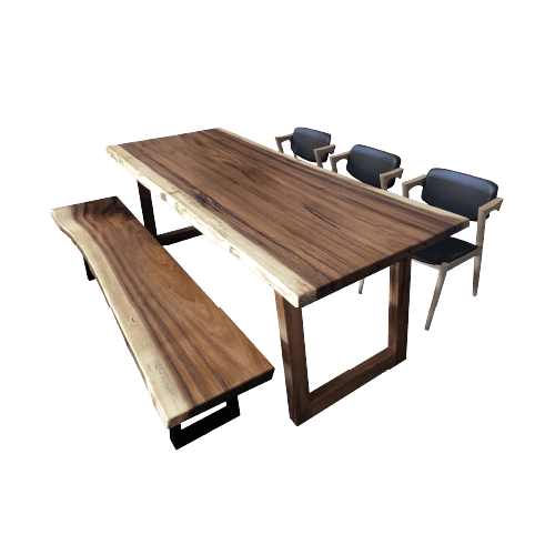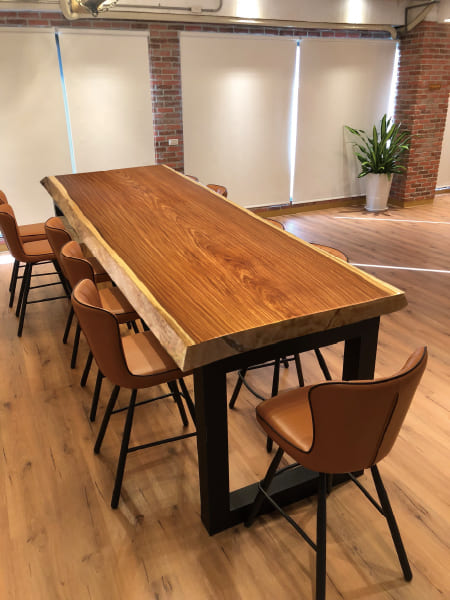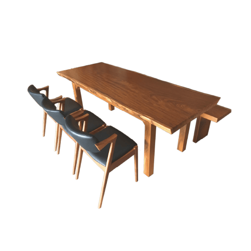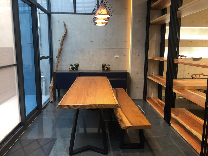 三吋原木桌板搭配原木長凳,莊重又大氣。