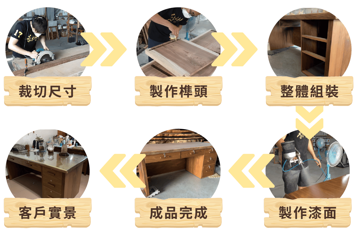 與現場服務人員確認製作的尺寸製作樣式與木種、板材顏色與紋路。